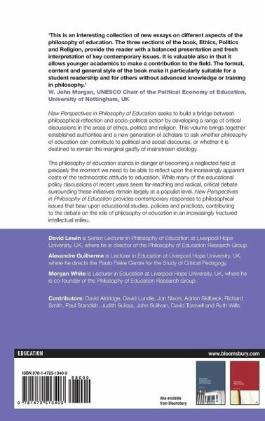 New Perspectives in Philosophy of Education seeks to build a bridge between philosophical reflection and socio-political action by developing a range of critical discussions in the areas of ethics, politics and religion. This volume brings together established authorities and a new generation of scholars to ask whether philosophy of education can contribute to political and social discourse, or whether it is destined to remain the marginal gadfly of mainstream ideology. The philosophy of education stands in danger of becoming a neglected field at precisely the moment we need to be able to reflect upon the increasingly apparent costs of the technocratic attitude to education. While many of the educational policy discussions of recent years seem far-reaching and radical, critical debate surrounding these initiatives remain largely at a populist level. New Perspectives in Philosophy of Education provides contemporary responses to philosophical issues that bear upon educational studies, policies and practices, contributing to the debate on the role of philosophy of education in an increasingly fractured intellectual milieu.