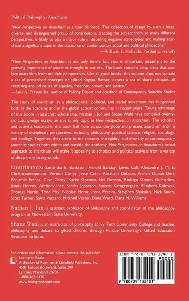 The study of anarchism as a philosophical, political, and social movement has burgeoned both in the academy and in the global activist community in recent years. Taking advantage of this boom in anarchist scholarship, Nathan J. Jun and Shane Wahl have compiled twenty-six cutting-edge essays on this timely topic in New Perspectives on Anarchism.