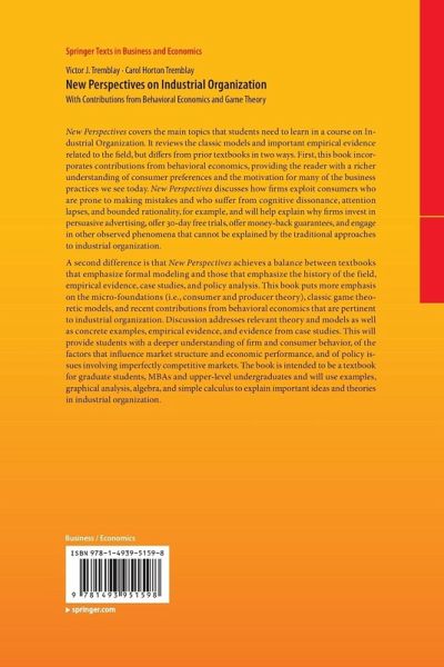 A second difference is that this book achieves a balance between textbooks that emphasize formal modeling and those that emphasize the history of the field, empirical evidence, case studies, and policy analysis. This text puts more emphasis on the micro-foundations (i.e., consumer and producer theory), classic game theoretic models, and recent contributions from behavioral economics that are pertinent to industrial organization. Each topic will begin with a discussion of relevant theory and models and will also include a discussion of concrete examples, empirical evidence, and evidence from case studies. This will provide students with a deeper understanding of firm and consumer behavior, of the factors that influence market structure and economic performance, and of policy issues involving imperfectly competitive markets. The book is intended to be a textbook for graduate students, MBAs and upper-level undergraduates and will use examples, graphical analysis, algebra, and simple calculus to explain important ideas and theories in industrialorganization.