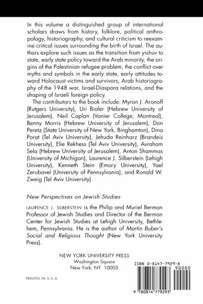 In this volume a distinguished group of international scholars draws from history, folklore, political anthropology, historiography, and cultural criticism to reexamine critical issues surrounding the birth of Israel. The authors explore such issues as the transition form yishuv to state, early state policy toward the Arab minority, the origins of the Palestinian refugee problem, the conflict over myths and symbols in the early state, early attitude toward Holocaust victims and survivors, Arab historiography of the 1948 war, Israel-Diaspora relations, and the shaping of Israeli foreign policy. The contributors to the book include: Myron J. Aronoff (Rutgers University), Uri Bialer (Hebrew University of Jerusalem), Neil Caplan (Vanier College, Montreal), Benny Morris(Hebrew Univeristy of Jerusalem), Don Peretz (State University of New York, Binghamton), Dina Porat (Tel Aviv University), Jehuda Reinharz (Brandeis University), Elie Rekhess (Tel Aviv University), Avraham Sela(Hebrew University of Jerusalem), Anton Shammas(University of Michigan), Laurence J. Silberstein (Lehigh University), Kennethy STein (Emory University), Yael Zerubavel(University of Pennsylvania), and Ronald W. Zweig (Tel Aviv University).