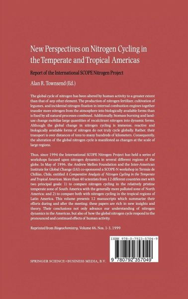 Inputs of nitrogen to terrestrial and aquatic ecosystems have increased several-fold over the last one hundred and fifty years, with the steepest increases during the last four decades. The expansion of fertilizer manu facture and use, the increase in fossil fuel combustion, the intensification of animal husbandry, and widespread cultivation of N2 fixing crops have all contributed to the dramatic increase in N inputs. The increase has been most rapid in Northern Hemisphere (NH) temperate ecosystems, but presently subtropical and tropical regions of Asia are also experiencing an explosive increase in N inputs to terrestrial ecosystems (W. Chameides, pers. comm. ; Galloway et al. 1996). Projected increases in N deposition for these trop ical and subtropical regions, with a high natural background of N inputs, exceed increases projected for temperate and arctic regions (Cleveland et al. submitted; Galloway et al. 1994; Holland & Lamarque 1997a). Compared to biological N fixation, N deposition is becoming a proportionately greater source of N to terrestrial and aquatic ecosystems worldwide (Vitousek et al. 1997). 6 The nitrogen contained in the atmosphere as N , 3. 9 _ 10 Tg (Tg = 2 12 10 g), is the largest reservoir of N in the Earth system (Warneck 1988). However, this paper focuses on the nitrogen emissions and deposition that have been transformed from N2 into reactive forms that are biologically avail able (e. g. Vitousek et al. 1997).