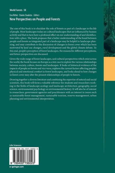 The aim of this book is to elucidate the role of forests as part of a landscape in the life of people. Most landscapes today are cultural landscapes that are influenced by human activity and that in turn have a profound effect on our understanding of and identification with a place. The book proposes that a better understanding of the bond between people and forests as integrated part of a landscape may be helpful in landscape planning, and may contribute to the discussion of changes in forest cover which has been motivated by land use changes, rural development and the global climate debate. To this end, people's perception of forest landscapes, the reasons for different perceptions, and future perspectives are discussed.