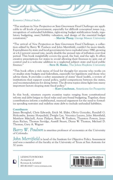 Part I State Debt and Fiscal Stabilization Chapter 1 State Debt and Liabilities: A Holistic Approach Chapter 2 U.S. State Debt Defaults and Constitutional Reform in Historical Perspective Chapter 3 Pension Liability Stress for State Governments Chapter 4 Preparing State Finances for a Time of Crisis Chapter 5 Debt Fatigue in the States: Red States, Blue States, and Zombie States Part II State Fiscal Institutions Chapter 6 Budget Stabilization Funds Chapter 7 Anti-Aid Provisions in State Constitutions Chapter 8 Competition, Networks, and Public-Private Partnerships: Contributions to State Governance Chapter 9 Extending Zero-Based Budgeting to Zero-Based Regulation Part III Fiscal Federalism Chapter 10 Government Growth, Institutional Erosion, and the Fiscal Squeeze: Nebraska as a Case Study Chapter 11 Fiscal Federalism and State Budgeting Chapter 12 Give People a Vote That Counts, and They Will Vote for Fiscal Responsibility Chapter 13 Florida's Fiscal Conservatism