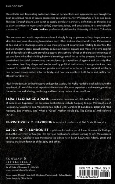 Sarah LaChance Adams is Associate Professor of Philosophy at the University of Wisconsin, Superior. Her previous publications include Coming to Life: Philosophies of Pregnancy, Childbirth and Mothering (co-edited with Caroline Lundquist, 2012) and Mad Mothers, Bad Mothers, and What a "Good" Mother Would Do: The Ethics of Ambivalence (2014). Christopher M. Davidson is Assistant Professor at Ball State University. Caroline R. Lundquist is a philosophy instructor at Lane Community College and at the University of Oregon. Her previous publications include Coming to Life: Philosophies of Pregnancy, Childbirth and Mothering (co-edited with Sarah LaChance Adams, 2012), and various articles in feminist philosophy and ethics.