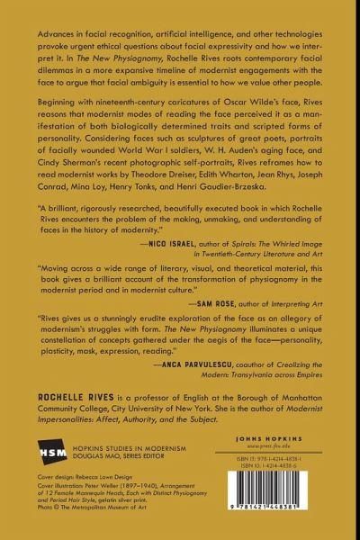 A fascinating new study of the face, form, and history of expression. Advances in facial recognition, artificial intelligence, and other technologies provoke urgent ethical questions about facial expressivity and how we interpret it. In The New Physiognomy, Rochelle Rives roots contemporary facial dilemmas in a more expansive timeline of modernist engagements with the face to argue that facial ambiguity is essential to how we value other people. Beginning with nineteenth-century caricatures of Oscar Wilde's face, Rives reasons that modernist modes of reading the face perceived it as a manifestation of both biologically determined traits and scripted forms of personality. Considering faces such as sculptures of great poets, portraits of facially wounded World War I soldiers, W. H. Auden's aging face, and Cindy Sherman's recent photographic self-portraits, Rives reframes how to read modernist works by Theodore Dreiser, Edith Wharton, Jean Rhys, Joseph Conrad, Mina Loy, Henry Tonks, and Henri Gaudier-Brzeska.