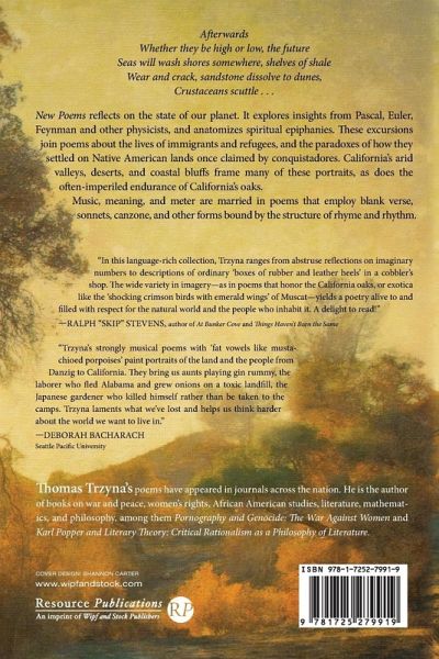 Afterwards Whether they be high or low, the future Seas will wash shores somewhere, shelves of shale Wear and crack, sandstone dissolve to dunes, Crustaceans scuttle . . . New Poems reflects on the state of our planet. It explores insights from Pascal, Euler, Feynman and other physicists, and anatomizes spiritual epiphanies. These excursions join poems about the lives of immigrants and refugees, and the paradoxes of how they settled on Native American lands once claimed by conquistadores. California's arid valleys, deserts, and coastal bluffs frame many of these portraits, as does the often-imperiled endurance of California's oaks. Music, meaning, and meter are married in poems that employ blank verse, sonnets, canzone, and other forms bound by the structure of rhyme and rhythm.