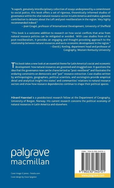 "A superb, genuinely interdisciplinary collection of essays underpinned by a commitment to social justice, this book offers a set of rigorous, theoretically-informed studies of governance within the vital natural resource sector in Latin America and makes a genuine contribution to debates about the Left and post-neoliberalism in the region. Very highly recommended indeed."
