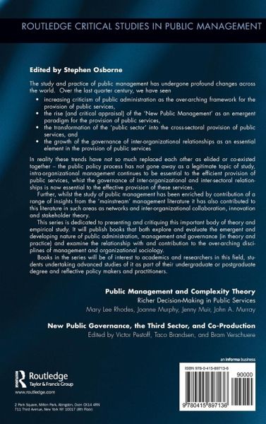 The book provides a state of the art overview of current research into co-production and its contribution to the emerging New Public Governance paradigm. It provides work by scholars from all over the world, which deal with such diverse topics like the conceptualization of what co-production means, how co-production works in practice, and what the consequences are of co-production for public sector management.