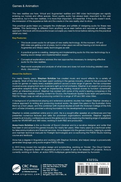 The new realities are here. Virtual and Augmented realities and 360 video technologies are rapidly entering our homes and office spaces. Good quality audio has always been important to the user experience, but in the new realities, it is more than important, it's essential. If the audio doesn't work, the immersion of the experience fails and the cracks in the new reality start to show. This practical guide helps you navigate the challenges and pitfalls of designing audio for these new realities. This technology is different from anything we've seen before and requires an entirely new approach; this book will introduce the broad concepts you need to know before delving into the practical detail you need. Key Features This book covers audio for all types of new reality technology. At the moment, VR and 360 video are getting a lot of press, but in a few years we will be hearing a lot more about Augmented and Mixed reality technologies as well. A practical guide to creating, designing and implementing audio for this new technology by a leading sound design and implementation expert. Conceptual explanations address the new approaches necessary to designing effective audio for the new realities. Real-world examples and analysis of what does and does not work including detailed case study discussions.