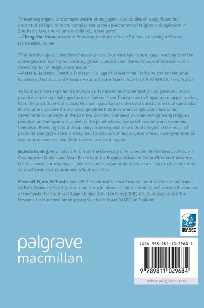 As Southeast Asia experiences unprecedented economic modernization, religious and moral practices are being challenged as never before. From Thai casinos to Singaporean megachurches, from the practitioners of Islamic Finance in Jakarta to Pentecostal Christians in rural Cambodia, this volume discusses the moral complexities that arise when religious and economic developments converge. In the past few decades, Southeast Asia has seen growing religious pluralism and antagonisms as well as the penetration of a market economy and economic liberalism. Providing a multidisciplinary, cross-regional snapshot of a region in the midst of profound change, this text is a key read for scholars of religion, economists, non-governmental organization workers, and think-tankers across the region.