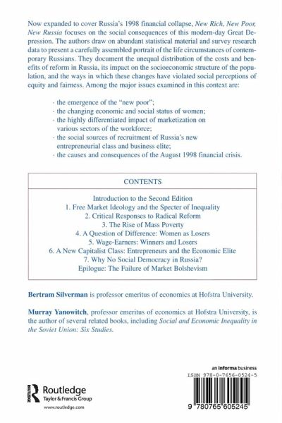 Now expanded to cover the consequences of Russia's 1998 financial collapse, this book focuses on the social consequences of a modern-day great depression. The text examines the unequal distribution of the costs and benefits of Russia's leap into capitalism. The topics covered include: the emergence of the "new poor"; the recruitment of a business elite; the changing social and economic status of women; and the impact of marketization on employment. The study draws on a range of statistics and survey research data to present a portrait of the lives and circumstances of comtemporary Russians.