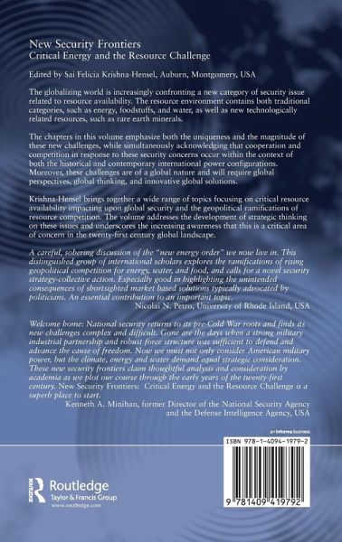 Introduction Global Security in the Twenty-first Century: The Critical Energy and Resource Challenges, Sai Felicia Krishna-Hensel; Chapter 1 Energy Security and the Revival of Geopolitics: The Russian Case, Mikhail A. Molchanov; Chapter 2 Energy Transitions and International Security in the Twenty-first Century, Mert Bilgin; Chapter 3 A Grounded Comparison of Energy Security in Denmark, Brazil, Bangladesh, and China, Benjamin K. Sovacool; Chapter 4 Global Energy Governance Post-2012: Bridging the Gap Between Energy Security and Climate Policy, Meraiah Foley; Chapter 5 An Economic and National Security Perspective on Critical Resources in the Energy Sector, Nayantara D. Hensel; Chapter 6 Hydropolitics in South American International Relations: A Perspective on Water Governance at the Prata Basin - Between Conflict and Cooperation (1960-1992), Fábio Albergaria de Queiroz; Chapter 7 A Need for New Institutions? Bilateral Deals over Food Producing Resources and International Co-Operation on Food Security, Benjamin Shepherd; Conclusion Conclusions Securing New Security Frontiers, Daniel S. Papp;