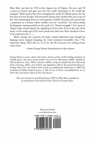 ¿lhan Berk was born in 1918 in the Aegean city of Manisa. He once said "If a poem is written and goes out into the world, something in the world has changed." Berk's poems changed the world of Turkish poetry for the best part of seven decades. His innovative poetics marked him out as one of the vital modernizing forces in contemporary Turkish literature and earned him a reputation as a literary enfant terrible, even an "extremist." Yet others deride his linguistic experimentalism as the work of a "French renegade." Few poets in Turkey today would dispute the significance of his work. Even in the year of his death, at the tender age of 90, more productive than ever, Berk remained a force to be reckoned with. [...]Berk's writing was a process of steady, careful refinement and, though his language never stopped changing, the vision remained remarkably clear. "The important thing," Berk tells us, "is to live the life of poetry, the writing always comes later."