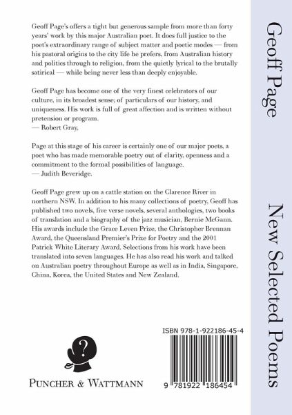 Geoff Page's offers a tight but generous sample from more than forty years' work by this major Australian poet. It does full justice to the poet's extraordinary range of subject matter and poetic modes - from his pastoral origins to the city life he prefers, from Australian history and politics through to religion, from the quietly lyrical to the brutally satirical - while being never less than deeply enjoyable.