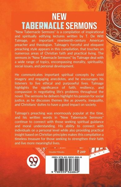 "New Tabernacle Sermons" is a compilation of inspirational and spiritually edifying lectures written by T. De Witt Talmage, an important nineteenth-century American preacher and theologian. Talmage's forceful and eloquent preaching style appears in this compilation, that touches on numerous areas of Christian faith and practical living. The sermons in "New Tabernacle Sermons" by Talmage deal with a wide range of topics, encompassing morality, spirituality, social issues, and personal development. He communicates important spiritual concepts by vivid imagery and engaging anecdotes, and he encourages his listeners to live ethical and purposeful lives. Talmage highlights the significance of faith, resiliency, and compassion in negotiating life's problems throughout the novel. The sermons he delivers highlight his passion for social justice, as he discusses themes like as poverty, inequality, and Christians' duties to have a good impact on society. Talmage's preaching was enormously popular at the time, and his written words in "New Tabernacle Sermons" continue to connect with those seeking spiritual guidance and moral understanding. His ability to connect with individuals on a personal level while also providing practical insight based on Christian principles makes this compilation a timeless treasure for those seeking to strengthen their faith and live more meaningful lives.