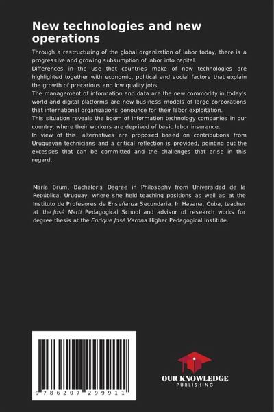 Through a restructuring of the global organization of labor today, there is a progressive and growing subsumption of labor into capital.Differences in the use that countries make of new technologies are highlighted together with economic, political and social factors that explain the growth of precarious and low quality jobs.The management of information and data are the new commodity in today's world and digital platforms are new business models of large corporations that international organizations denounce for their labor exploitation.This situation reveals the boom of information technology companies in our country, where their workers are deprived of basic labor insurance. In view of this, alternatives are proposed based on contributions from Uruguayan technicians and a critical reflection is provided, pointing out the excesses that can be committed and the challenges that arise in this regard.