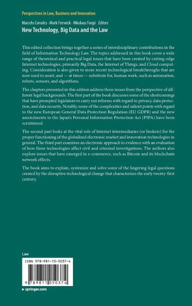 This edited collection brings together a series of interdisciplinary contributions in the field of Information Technology Law. The topics addressed in this book cover a wide range of theoretical and practical legal issues that have been created by cutting-edge Internet technologies, primarily Big Data, the Internet of Things, and Cloud computing. Consideration is also given to more recent technological breakthroughs that are now used to assist, and - at times - substitute for, human work, such as automation, robots, sensors, and algorithms.