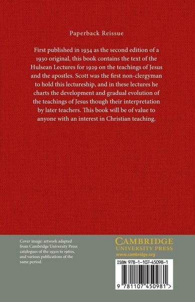 First published in 1934 as the second edition of a 1930 original, this book contains the text of the Hulsean Lectures for 1929 on the teachings of Jesus and the apostles. Scott was the first non-clergyman to hold this lectureship, and in these lectures he charts the development and gradual evolution of the teachings of Jesus though their interpretation by later teachers. This book will be of value to anyone with an interest in Christian teaching.