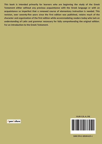 This classic introduction is designed for learners who are beginning the study of the New Testament in Greek, whether approaching the language for the very first time or seeking to strengthen insufficient foundations. More than seventy-five years after its original publication, this revised edition preserves the clarity and organization of J. Gresham Machen's method while adapting to the needs of modern readers who may not possess prior knowledge of Latin or advanced grammar. Rather than offering a purely descriptive grammar, the book emphasizes active reading of the biblical text, presenting carefully sequenced explanations drawn from the author's extensive teaching experience. Each grammatical concept is introduced progressively, illustrated with practical exercises, and reinforced with a concise vocabulary limited to the most essential forms. This structured approach provides students with the tools necessary to gain confidence in biblical Greek, making it accessible to theology students, seminarians, and independent learners alike. Combining academic rigor with pedagogical clarity, New Testament Greek for Beginners remains one of the most reliable and enduring guides to the study of Koine Greek and the Greek New Testament. John Gresham Machen (July 28, 1881-January 1, 1937) was an American Presbyterian theologian in the early twentieth century. He was the professor of New Testament at Princeton Seminary between 1915 and 1929, and led a conservative revolt against modernist theology at Princeton and formed Westminster Theological Seminary as a more orthodox alternative.