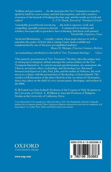 Generations of students have known G. B. Caird as a penetrating and lucid guide to the many questions and problems posed by modern biblical study. His brilliant commentaries on St Luke, the Book of Revelation, and St Paul's Prison Epistles, as well as his other studies on theology and the Bible, have won for him a place among the twentieth century's foremost biblical scholars. This new and masterly presentation of New Testament theology, completed and edited since the author's death by Professor L. D. Hurst, takes the unique step of setting up an imaginary debate amongst the various authors of the New Testament themselves. As central concepts (predestination, sin, atonement, the Church, sacrament, ethics, eschatology, and christology) are 'discussed' between such figures as Luke, Paul, John, and the author of Hebrews, the work moves to its climax with a presentation of the theology of Jesus himself. The result is a particularly fresh and illuminating picture of the ideas at the heart of Christianity, deserving a place on the shelf of every serious pastor, theologian, and student of the Bible.