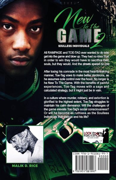 All RAMPAGE and TOE-TAG ever wanted to do was get into the game and blow up. They had no idea that in order to win they would have to sacrifice their souls, but they would. And the streets spared no one. After losing his comrade in the most heartbreaking manner, Toe-Tag vows to make better decisions, as he assumes sole control over the hood. No longer is he New To The Game. With the benefits of painful experiences, Toe-Tag moves with a sage and calculated strategy, but it might just be in vain. In a culture where murder, robbery, and extortion is glorified to the highest extent, Toe-Tag struggles to maintain his calm demeanor. Will the challenges of the game elevate Toe-Tag's social consciousness? Or will he become as ruthless as the Soulless Individuals that want to end his life?