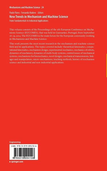 This work presents the most recent research in the mechanism and machine science field and its applications. The topics covered include: theoretical kinematics, computational kinematics, mechanism design, experimental mechanics, mechanics of robots, dynamics of machinery, dynamics of multi-body systems, control issues of mechanical systems, mechanisms for biomechanics, novel designs, mechanical transmissions, linkages and manipulators, micro-mechanisms, teaching methods, history of mechanism science and industrial and non-industrial applications.