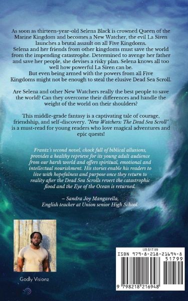 As soon as thirteen-year-old Selena Black is crowned Queen of the Marine Kingdom and becomes a New Watcher, the evil La Siren launches a brutal assault on all Five Kingdoms. Selena and her friends from other kingdoms must save the world from the impending catastrophe. Determined to avenge her father and save her people, she devises a risky plan. Selena knows all too well how powerful La Siren can be. But even being armed with the powers from all Five Kingdoms might not be enough to steal the elusive Dead Sea Scroll. Are Selena and other New Watchers really the best people to save the world? Can they overcome their differences and handle the weight of the world on their shoulders? This middle-grade fantasy is a captivating tale of courage, friendship, and self-discovery. "New Watchers: The Dead Sea Scrolls" is a must-read for young readers who love magical adventures and epic quests!