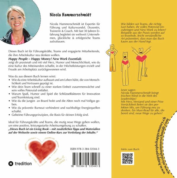 New Work Essentials - mit Herz, Humor und Menschlichkeit - mit Bonus-Onlinekursen!Wie du mit Leichtigkeit eine Arbeitskultur schaffst, die inspiriert, motiviert und Höchstleistungen ermöglicht.Happy People - Happy Money!Vergiss trockene Theorien und veraltete Führungsansätze! Dieses Buch zeigt dir auf fesselnde, praxisnahe und humorvolle Weise, wie du eine positive, leistungsstarke und menschliche Arbeitskultur erschaffst, in der dein Team mit Begeisterung sein volles Potenzial entfaltet. Ist dein Team müde, unmotiviert oder frustriert? Willst du als Führungskraft oder Teammitglied eine neue, moderne Arbeitskultur etablieren? Suchst du nach bewährten und gleichzeitig und konventionellen Strategien, um Zusammenarbeit, Innovationskraft und Erfolg zu steigern - ohne Stress und Druck?Dann ist "New Work Essentials" genau das Buch, das du brauchst! Was dich erwartet: Wie du eine von Vertrauen und Menschlichkeit geprägte Arbeitskultur etablierst. Die Geheimnisse der erfolgreichsten Führungskräfte - sofort anwendbar! Warum Spaß, Humor und Leichtigkeit essenziell für Höchstleistungen sind. Wie du ein Team formst, das sich gegenseitig motiviert und unterstützt. Wie du Fluktuation reduzierst und Talente langfristig bindest. Wie du Burnout vorbeugst und nachhaltige Energiequellen schaffst. Tools & Hacks, die in keiner Führungskräfte-Fortbildung gelehrt werden!Mehr als ein Buch - ein interaktives Erlebnis!"New Work Essentials" ist ein Living Book - ein Buch, das über den gedruckten Inhalt hinausgeht. Es bietet dir: Online-Kurs & exklusive Kurzvideos für vertiefende Impulse (das Hardcover hat eine Auswahl für einen EXTRA BONUS-ONLINEKURS!!) Downloadbare PDFs & Zusatzmaterialien zur praktischen Umsetzung Mehr als 80 inspirierende Illustrationen, die komplexe Themen auf den Punkt bringen QR-Codes zu regelmäßigen Live-Sessions mit der Autorin Eine echte Fundgrube für Führungskräfte, Projektleiter und engagierte Mitarbeitende, die sich auf die Reise machenwollen, ihre Teams neu aufzustellen - mit mehr Motivation, Innovationskraft und echter emotionaler Bindung. Spoiler: New Work ist kein Trend. Es ist eine Haltung. Eine Revolution. Und sie beginnt bei dir!