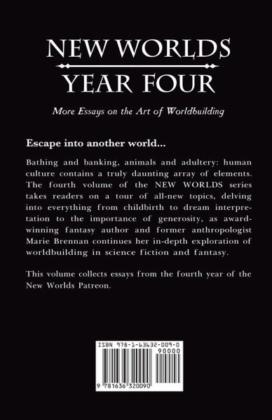 Escape into another world . . . Bathing and banking, animals and adultery: human culture contains a truly daunting array of elements. The fourth volume of the NEW WORLDS series takes readers on a tour of all-new topics, delving into everything from childbirth to dream interpretation to the importance of generosity, as award-winning fantasy author and former anthropologist Marie Brennan continues her in-depth exploration of worldbuilding in science fiction and fantasy. This volume collects essays from the fourth year of the New Worlds Patreon.