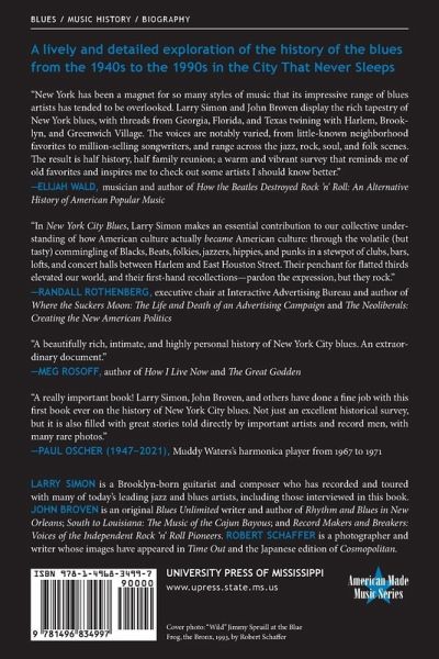 Larry Simon is a guitarist and composer. Originally from Brooklyn, New York, he has recorded and toured with many of today's leading jazz and blues artists. As a composer he has written extensively for dance, film, and theatre. Simon has also worked with poets Robert Pinsky, John Sinclair and others. John Broven, born in East Sussex, England. is a respected expert on the rock 'n' roll era, lending his knowledge to BBC Radio and NPR to discuss genres from swamp pop to the blues. He coedited the British magazine Blues Unlimited and cofounded Juke Blues Magazine. He is author of three highly regarded books on the history of blues and roots music, Record Makers and Breakers; Rhythm and Blues in New Orleans; and South to Louisiana: The Music of the Cajun Bayous. Robert Schaffer, from Bensonhurst, Brooklyn, is a photographer and writer whose images have appeared in Time Out and the Japanese edition of Cosmopolitan. His photos have been used on CDs for Gamelan Son of Lion, DownTown Ensemble, Larry Simon, Linda Dunn, and others.
