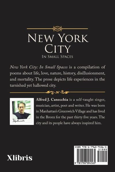 New York City:In Small Spaces is a compilation of poems about life, love, nature, history, disillusionment, and mortality. The prose depicts life experiences in the tarnished yet hallowed city.