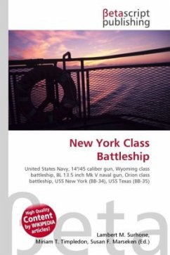 High Quality Content by WIKIPEDIA articles! The New York class battleship was the fifth series of two battleships of the United States Navy which served during World War I and World War II. The class represented the first use of the 14" naval gun by the U.S. Navy. The ships were designed in 1910, keels laid down in 1911, and launched in 1912. During World War I both New York-class battleships saw service in the Atlantic Ocean escorting Allied convoys. In the interwar period both underwent overhauls which improved their anti-aircraft batteries, and they were active in the Pacific Ocean training naval personnel. During World War II both battleship served in the Atlantic and Pacific, escorting Allied convoys to Europe, bombarding beachheads ahead of Allied amphibious assaults, and providing naval artillery support for US Army and Marine Corps personnel involved in ground operations.