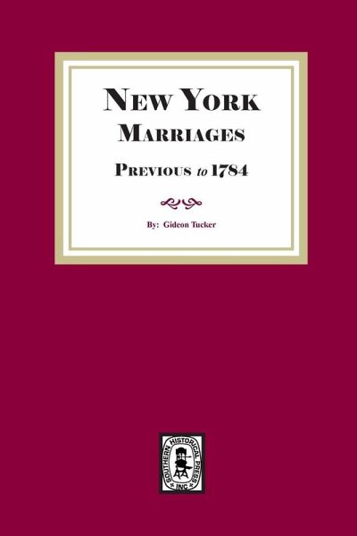 By: Gideon Tucker, and Robert H. Kelbey, Pub. 1860, 1898 & 1916, reprinted 2025, 586 pages, soft cover, ISBN #978-1-63914-691-8. This book is collaboration of the printing of three books into one volume that contains approximately 25,000 entries arranged alphabetically under the names of both brides and grooms, each giving the date of the license and a reference to the precise location of the original record. The bulk of this book consists of a reprint of the monumental Names of Persons for Whom Marriage Licenses Were Issued by the Secretary of the Province of New York, Previous to 1784, followed by the 48-page "Supplementary List of Marriage Licenses, and then by the 44 pages of additions and corrections by Robert H. Kelby entitled "New York Marriage Licenses.