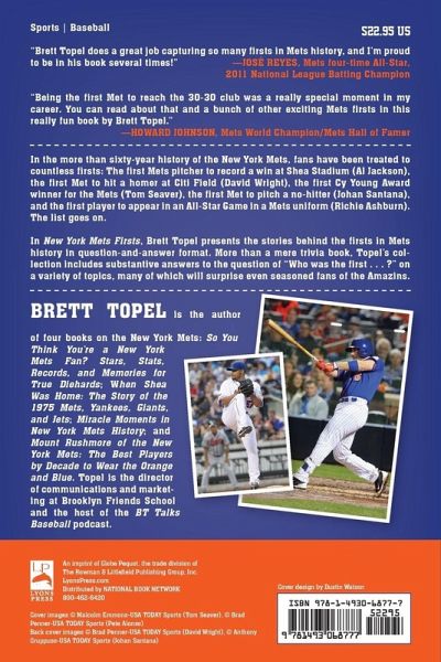 In New York Mets Firsts, Brett Topel presents the stories behind the firsts in Mets history in question-and-answer format. More than a mere trivia book, Topel’s collection includes substantive answers to the question of "Who was the first...?" on a variety of topics, many of which will surprise even seasoned fans of the Amazin’s.