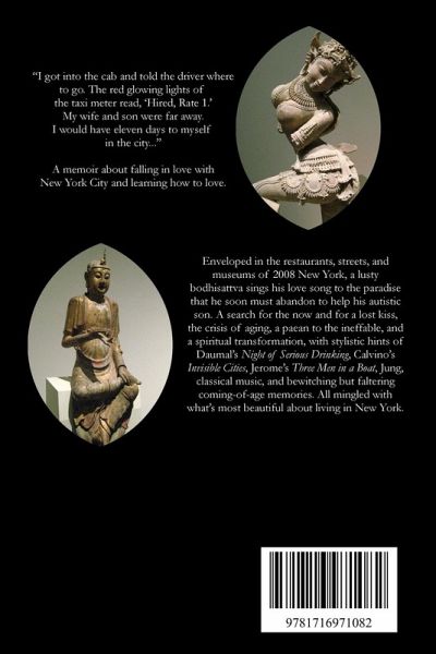 A memoir about falling in love with New York City and learning how to love. Enveloped in the restaurants, streets, and museums of 2008 New York, a lusty bodhisattva sings his love song to the paradise that he soon must abandon to help his autistic son. A search for the now and for a lost kiss, the crisis of aging, a paean to the ineffable, and a spiritual transformation, with stylistic hints of Daumal's Night of Serious Drinking, Calvino's Invisible Cities, Jerome's Three Men in a Boat, Jung, classical music, and bewitching but faltering coming-of-age memories. All mingled with what's most beautiful about living in New York.