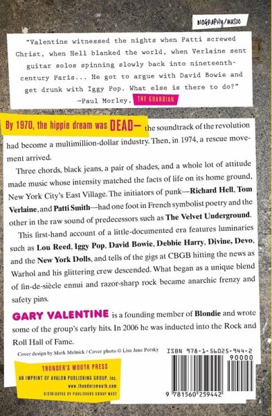 By 1970, the hippie dream of the 60s was dead -- the soundtrack to the revolution had become a multimillion-dollar industry. But four years later, emerging from the rubble of rock, was a music whose hard edge matched the lifestyle of its home turf -- New York's East Village. Punk's initiators -- Richard Hell, Tom Verlaine, and Patti Smith -- had one foot in 19"th"-century French symbolist poetry and the other in the raw sound of predecessors like the Velvet Underground. Now, in New York Rocker, Gary Valentine offers an inside account of this little-documented era. He talks about the luminaries -- like Debbie Harry, Lou Reed, Iggy Pop, David Bowie, Devo, and the New York Dolls -- and the gigs at CBGBs hitting the news as Warhol and his glittering crew descended. What began as a unique blend of fin-de-siecle ennui and edgy rock, exploded worldwide into an anarchic frenzy of safety pins and gutter decadence, then plunged into excess and eventual ruin -- with its survivors making a leap into the mainstream.