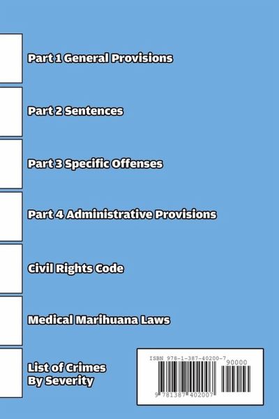 The complete text of the New York State Penal Code. This is the 2018 version of the law. The Penal Code includes the following: Part 1 - General Provisions; Part 2 - Sentences; Part 3 - Specific Offenses; Part 4 - Administrative Provisions; also includes the New York Civil Rights Law and Article 33 Title 5-A of the Public Health Law (The Medical Marihuana laws) plus in the appendix: List of Offenses by Severity. Does not contain any legal analysis.