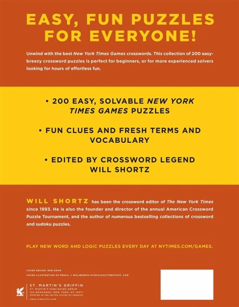 Easy, fun puzzles for everyone! Unwind with the best New York Times Games crosswords. This collection of 200 easy-breezy crossword puzzles is perfect for beginners, or for more experienced solvers looking for hours of effortless fun. Features: - 200 easy, solvable New York Times Games puzzles - Fun clues and fresh terms and vocabulary - Edited by crosswords legend Will Shortz