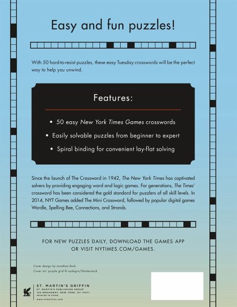 Easy and fun puzzles! With 50 hard-to-resist puzzles, these easy Tuesday crosswords will be the perfect way to help you unwind. Features: - 50 easy New York Times Games crosswords - Easily solvable puzzles from beginner to expert - Spiral binding for convenient lay-flat solving