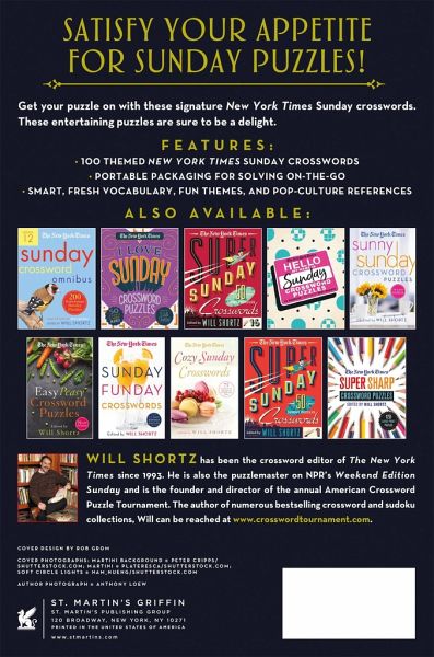 A collection of exactly what crossword puzzlers want: 100 Sunday puzzles straight from the pages of The New York Times Sunday puzzles are a signature of The New York Times, beloved by crossword players everywhere. This collection features 100 of them, all edited by puzzlemaster Will Shortz and sure to satisfy anyone's appetite for puzzling. Features: - 100 themed New York Times Sunday crosswords - Portable packaging for solving on-the-go - Smart, fresh vocabulary, fun themes, and pop-culture references