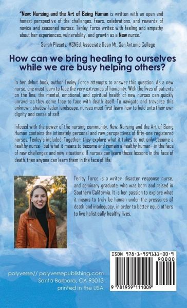 Tenley Force is a writer, disaster response nurse, and seminary graduate, who was born and raised in Southern California. It is her passion to explore what it means to truly be human under the pressures of death and inadequacy, in order to better equip others to live holistically healthy lives. With the lives of patients on the line, the mental, emotional, and spiritual health of caregivers can quickly unravel as they come face to face with death itself. To navigate and traverse this unknown, shadow-laden landscape, nurses must first learn how to hold onto their own dignity and sense of self. Infused with the power of the nursing community, Tenley's book contains the intimately personal and raw perspectives of fifty-one Registered Nurses. Together, leaving no detail spared, they explore what it takes to not only become a healthy nurse, but what it means to become a healthy human being in the face of new challenges and new situations.