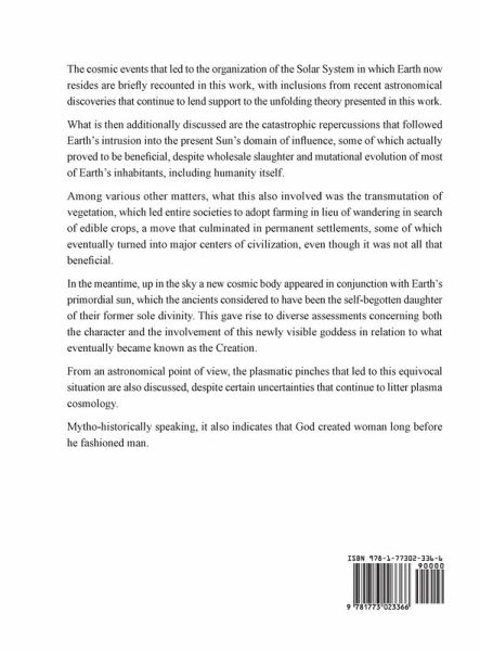The cosmic events that led to the organization of the Solar System in which Earth now resides are briefly recounted in this work with inclusions from recent astronomical discoveries that continue to lend support to the unfolding theory presented in this work. What is then additionally discussed are the catastrophic repercussions that followed Earth’s intrusion into the present Sun’s domain of influence, some of which events actually proved to be beneficial despite wholesale slaughter and mutational evolution of most of Earth’s inhabitants including humanity itself. Among various other matters, what this also involved was the transmutation of vegetation which led entire societies to adopt farming in lieu of wandering in search of edible crops, a move that culminated in permanent settlements some of which eventually turned into major centers of civilization, even though it was not all that beneficial. In the meantime, up in the sky a new cosmic body appeared in conjunction with Earth’s primordial sun which the ancients considered to have been the self-begotten daughter of their former sole divinity. This gave rise to diverse assessments concerning both the character and the involvement of this newly visible goddess in relation to what eventually became known as the Creation. From an astronomical point of view, the plasmatic pinches that led to this equivocal situation are also discussed despite certain uncertainties that continue to litter plasma cosmology. Mytho-historically speaking, it also indicates that God created woman long before he fashioned man.