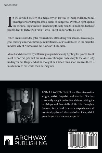 In the divided society of a mega city on its way to independence, police investigators are dragged into a series of dangerous events. A fight against the criminal organization threatening the city results in multiple deaths of people dear to Detective Frank Harris-most importantly, his wife. When Frank's only daughter returns home after a long year abroad, his colleague goes missing under disturbing circumstances. Jack was last seen in the majestic, modern city of Newbourne but now can't be located. Misled and distracted by different groups shamelessly fighting for power, Frank must rely on his guts and the kindness of strangers on his way to the Alter-City underground. Despite what he thought he knew, Frank soon realizes there is much more to his world than he imagined.