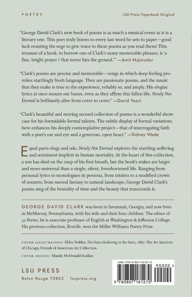 Equal parts elegy and ode, Newly Not Eternal explores the startling suffering and sentiment implicit in human mortality. At the heart of this collection, a son has died on the cusp of his first breath, but the book's stakes are larger and more universal than a single, silent, foreshortened life. Ranging from personal lyrics to monologues in persona, from triolets to a modified crown of sonnets, from surreal fantasy to natural landscape, George David Clark's poems sing of the brutality of time and the beauty that transcends it.