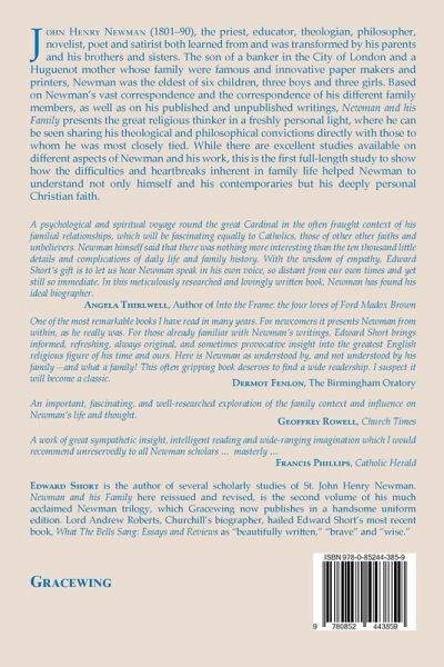 John Henry Newman (1801-90), the priest, educator, theologian, philosopher, novelist, poet and satirist both learned from and was transformed by his parents and his brothers and sisters. The son of a banker in the City of London and a Huguenot mother whose family were famous and innovative paper makers and printers, Newman was the eldest of six children, two boys and three girls. Based on Newman's vast correspondence and the correspondence of his different family members, as well as on his published and unpublished writings, Newman and his Family presents the great religious thinker in a freshly personal light, where he can be seen sharing his theological and philosophical convictions directly with those to whom he was most closely tied. While there are excellent studies available on different aspects of Newman and his work, this is the first full-length study to show how the difficulties and heartbreaks inherent in family life helped Newman to understand not only himself and his contemporaries but his deeply personal Christian faith.