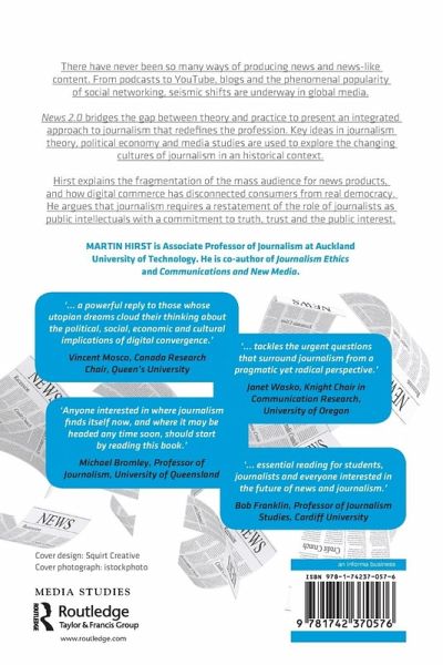 There have never been so many ways of producing news and news-like content. From podcasts, to YouTube, blogs and the phenomenal popularity of social media, seismic shifts are underway in global media. News 2.0 bridges the gap between theory and practice to present an integrated approach to journalism that redefines the profession. Key ideas in journalism theory, political economy and media studies are used to explore the changing cultures of journalism in an historical context. Hirst explains the fragmentation of the mass audience for news products, and how digital commerce has disconnected consumers from real democracy. He argues that journalism requires a restatement of the role of journalists as public intellectuals with a commitment to truth, trust and the public interest.
