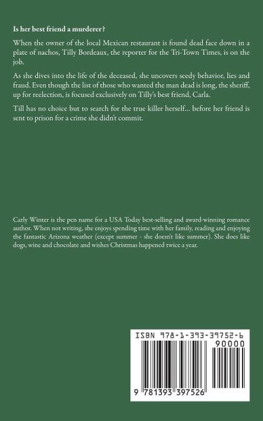 Is her best friend a murderer? When the owner of the local Mexican restaurant is found dead face down in a plate of nachos, Tilly Bordeaux, the reporter for the Tri-Town Times, is on the job. As she dives into the life of the deceased, she uncovers seedy behavior, lies and fraud. Even though the list of those who wanted the man dead is long, the sheriff, up for reelection, is focused exclusively on Tilly's best friend as the main suspect. Till has no choice but to search for the true killer herself... before her friend is sent to prison for a crime she didn't commit.