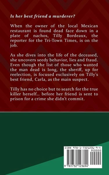Is her best friend a murderer? When the owner of the local Mexican restaurant is found dead face down in a plate of nachos, Tilly Bordeaux, the reporter for the Tri-Town Times, is on the job. As she dives into the life of the deceased, she uncovers seedy behavior, lies and fraud. Even though the list of those who wanted the man dead is long, the sheriff, up for reelection, is focused exclusively on Tilly's best friend, Carla, as the main suspect. Tilly has no choice but to search for the true killer herself... before her friend is sent to prison for a crime she didn't commit.
