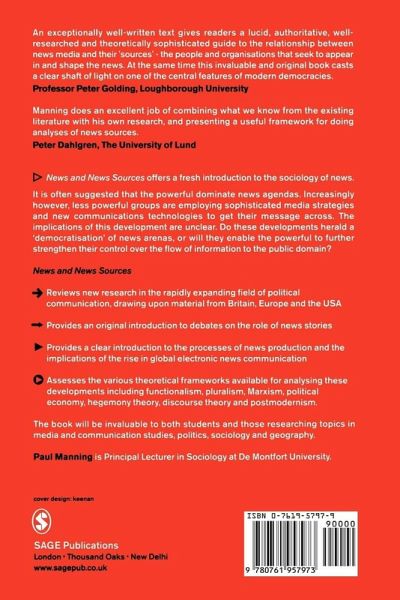 News and News Sources offers a fresh introduction to the sociology of news. It is often suggested that the powerful dominate news agendas. Increasingly however, less powerful groups are employing sophisticated media strategies and new communication technologies to get their message across. The implications of this development are unclear. Do these developments herald a `democratisation' of news arenas, or will they enable the powerful further strengthen their control over the flow of information to the public domain? News and News Sources: reviews new research in the rapidly expanding field of political communication, drawing upon material from Britain, Europe and the USA; provides a clear introduction to the processes of news production and the implications of the rise in global electronic news communication; and assesses the various theoretical frameworks available for analysing these developments including fuctionalism, pluralism, Marxism, political economy, hegemony theory, discourse theory and postmodernism.