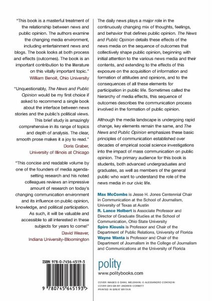 Although the media landscape is undergoing rapid change, key elements remain the same, and The News & Public Opinion emphasizes these basic principles of communication established over decades of empirical social science investigations into the impact of mass communication on public opinion. The primary audience for this book is students, both advanced undergraduates and graduate students, as well as members of the general public who want to understand the role of the news media in our civic life.